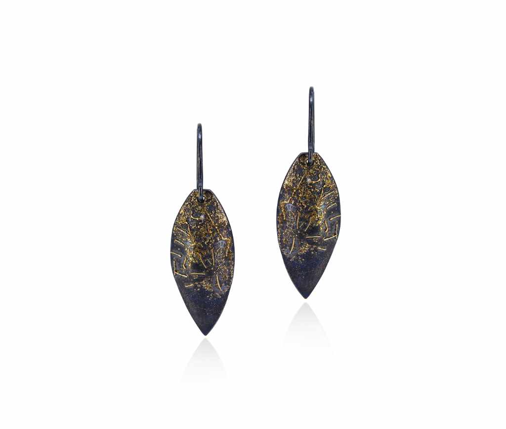 Oxidised sterling silver, 18ct yellow gold earrings [13 x 24.5mm] [$POA]