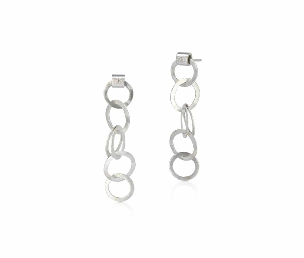 Sterling silver, black & white diamond earrings [9mm diam.] [$800]