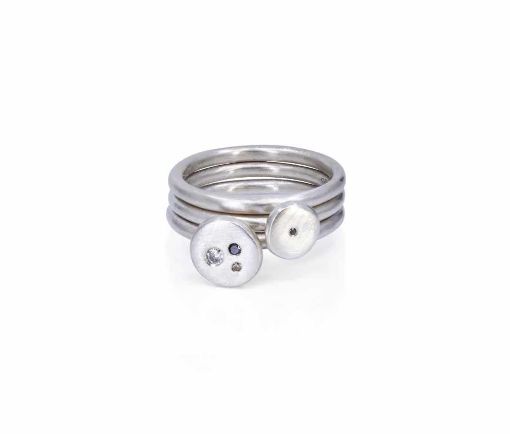 Sterling silver, white and champagne diamond ring [7.8mm setting, 6.3mm setting, 2mm bands] [$POA]