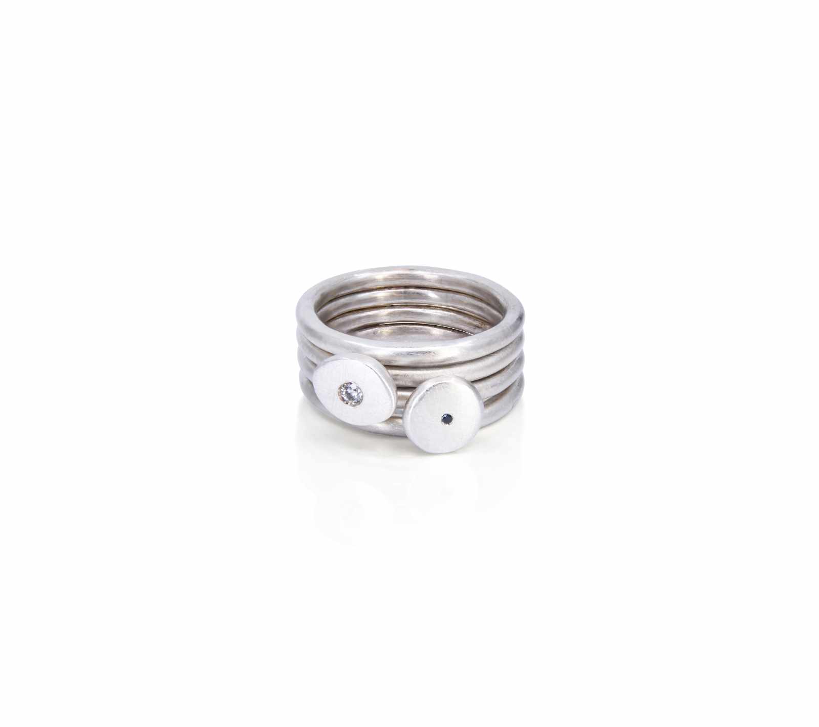 Sterling silver black & white diamond ring set [8.08mm wide at setting, 7.9mm wide at setting, 2mm round bands] [$POA]